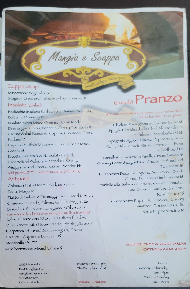 Welcome to Mangia E Scappa, a culinary gem nestled in Langley Township, Canada. Renowned for its vibrant menu, this eatery beautifully marries traditional Italian flavors with modern flair.